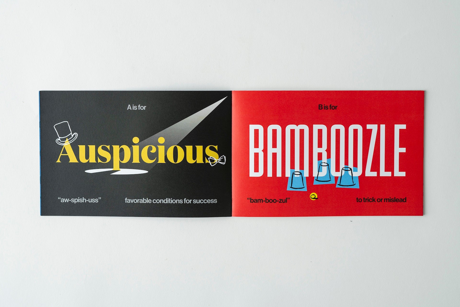 From auspicious to zephyr, this book is no hornswoggle — it’s the quintessential sesquipedalian juggernaut of ABC books. We’ll lollygag through the gobbledygook with a nefarious yawp and make an ickle alphabet kerfuffle.