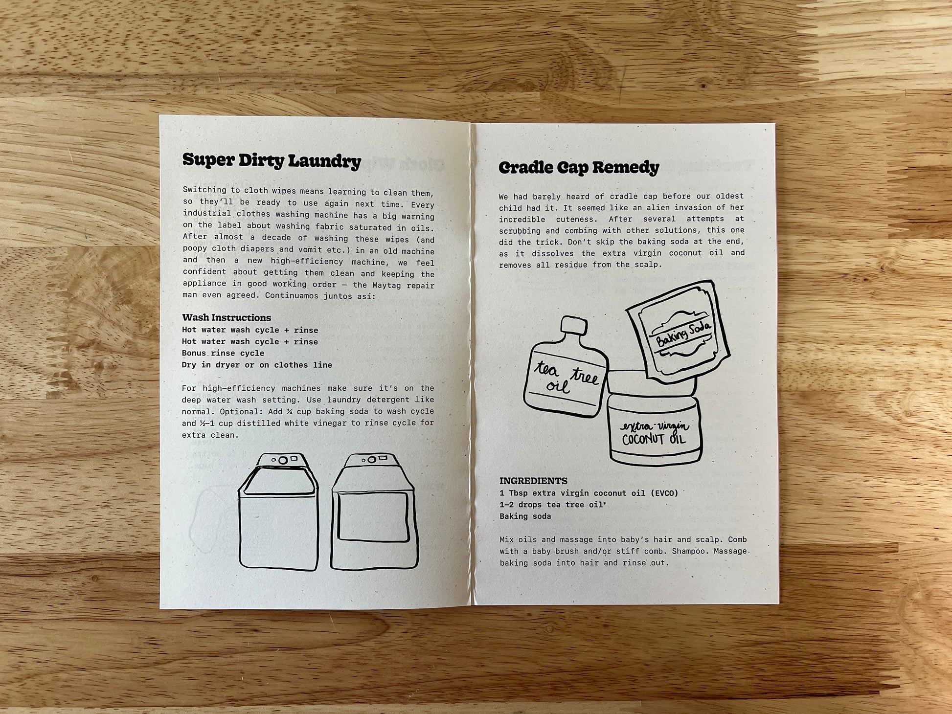 The Verde Hombre: Baby zine includes recipes for making your own cloth wipes, teething relief paste, and cradle cap remedy.